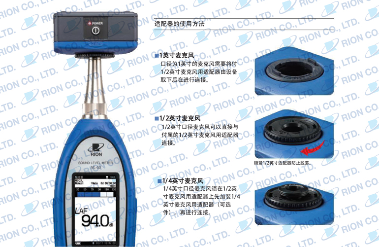 | 對應(yīng)麥克風(fēng) | 理音產(chǎn)品或滿足IEC 61094-4尺寸規(guī)定的其他公司的麥克風(fēng) 1英寸麥克風(fēng) 1/2英寸麥克風(fēng)(付屬適配器) 1/4英寸麥克風(fēng)(選配適配器) |