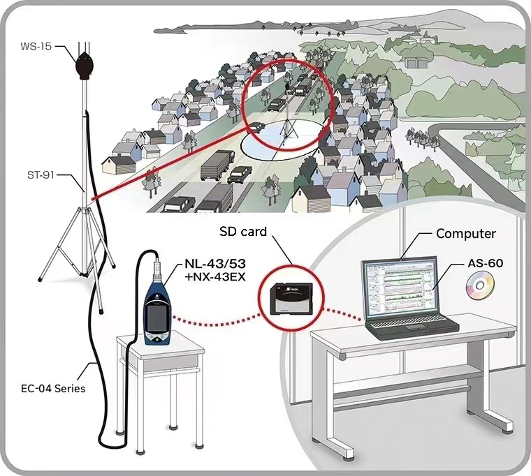 型號 產(chǎn)品名稱 備注 NL-53 / NL-43 精密聲學(xué)測量儀,Class 1 /普通聲學(xué)測量儀,Class 2 NX-43EX 功能擴(kuò)充軟件 WS-15 全天候防風(fēng)球 WS15006 防風(fēng)球安裝適配器 EC-04 系列 麥克風(fēng)延長線 ST-91 全天候防風(fēng)球用三腳架 LR-07 等級記錄儀 AS-60 環(huán)境計(jì)測數(shù)據(jù)管理軟件 計(jì)算機(jī) -