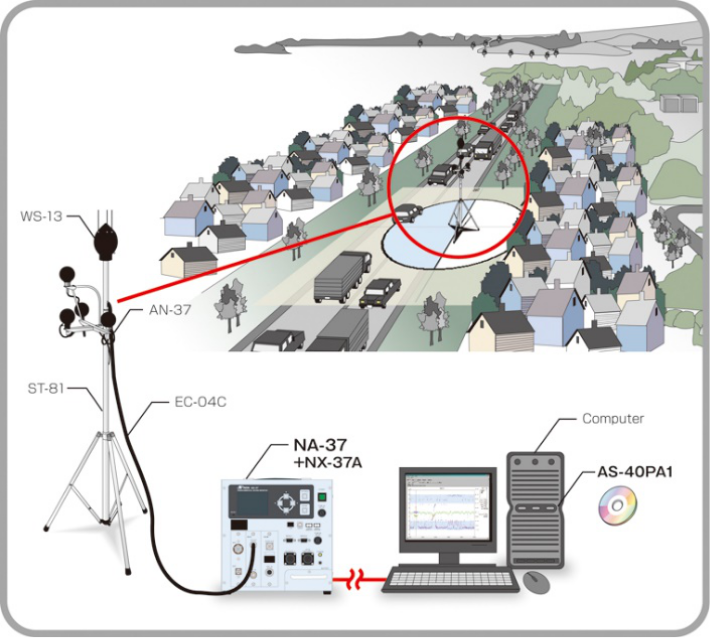 可以組合使用自動長期噪聲監(jiān)測專用設(shè)備 NA-37 和環(huán)境噪聲處理程序 NX-37A。此系統(tǒng)會每隔一定周期自動存儲必要的計(jì)算值。也可以使用每隔一定周期僅測量指定時間的間隔模式。數(shù)據(jù)可以通過 U盤或網(wǎng)線連接取得。數(shù)據(jù)處理由環(huán)境噪聲處理軟件AS-40PA1完成。此軟件可以每日、每月地將 Lden 等值輸出成報告,并能播放記錄下來的實(shí)聲以便確認(rèn)。支持多點(diǎn)監(jiān)測,可以在數(shù)個觀測點(diǎn)的數(shù)據(jù)間切換確認(rèn)。對應(yīng)規(guī)格 / 法令 / 標(biāo)準(zhǔn) ●日本的環(huán)境噪聲標(biāo)準(zhǔn) 配置清單