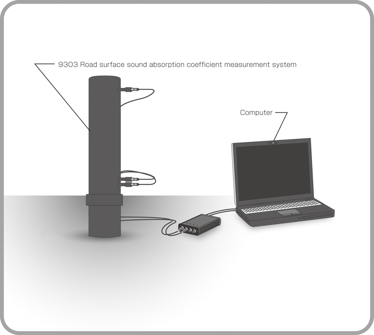 汽車行駛噪聲測試必須在ISO 10844(JIS D 8301)中規(guī)定的標(biāo)準(zhǔn)路面上進(jìn)行測量。 吸聲系數(shù)的現(xiàn)場測量方法在ISO 13472-2:2010中規(guī)定,而9303型駐波管正是基于該標(biāo)準(zhǔn)的測量系統(tǒng)。 由于可以簡單地通過將駐波管置于路面上而在短時(shí)間內(nèi)測量表面的吸聲系數(shù),因此非常適合于標(biāo)準(zhǔn)路面施工和老化的測量。