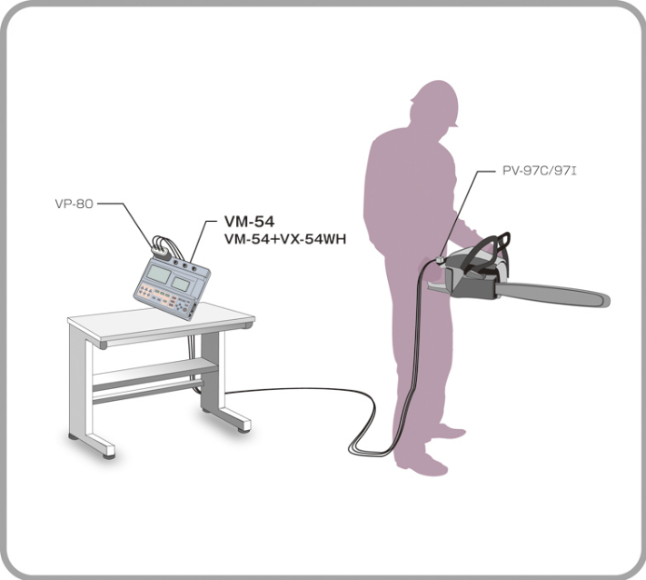 三方向加速度傳感器可以選擇 PV-97C 和 PV-97I。 通過手臂振動程序卡 VM-54WH 附帶的三通道振動輸入前置放大器連接。 手臂振動測量卡VX-54WH具有ISO 5349-1和ISO B 7761-1中規(guī)定的頻率加權(quán)特性Wh。 也可以測量三軸復合值。 三軸振動測量儀VM-54還可以通過添加可選的FFT分析卡VX-54FT來執(zhí)行FFT分析。 此外,由于配備了三個通道的交流輸出,因此可以連接到數(shù)據(jù)記錄儀和分析器。