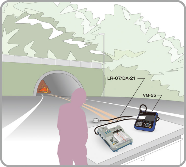 此系統(tǒng)可用于處理振動(dòng)加速度等級(jí)。振動(dòng)測量儀 VM-55 可以進(jìn)行三向振動(dòng)測量。等級(jí)記錄儀 LR-07 和數(shù)據(jù)記錄儀 DA-21 可用于長時(shí)間保存原始數(shù)據(jù)。