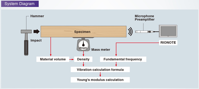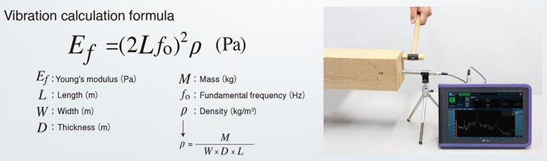 通過 SA-A1 測量敲擊木材的聲音,可根據聲頻、木材體積和密度計算楊氏模量。楊氏模量是表示材料變形難易程度和剛度的指標,用于結構分析、強度計算、特征值分析等領域。通過合理設定楊氏模量,能夠防止產品變形量和應力分布的預測與實際表現(xiàn)偏差過大。