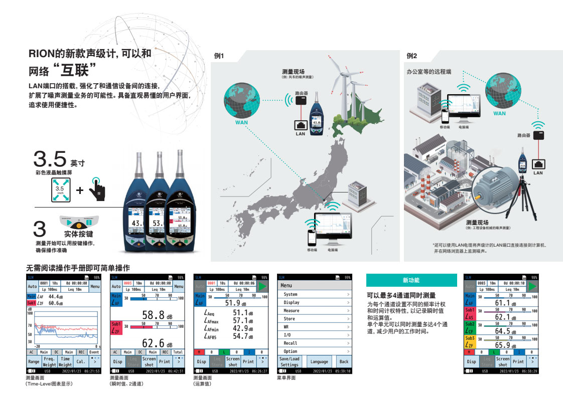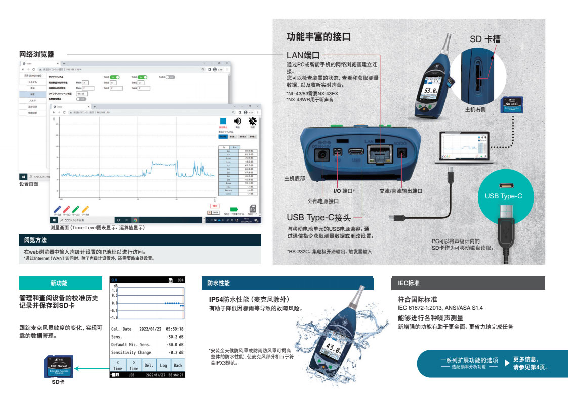 新NL系列聲級計可以使用LAN直接連接,通過電腦 的網(wǎng)頁瀏覽器遠程訪問,并進行噪聲監(jiān)測。