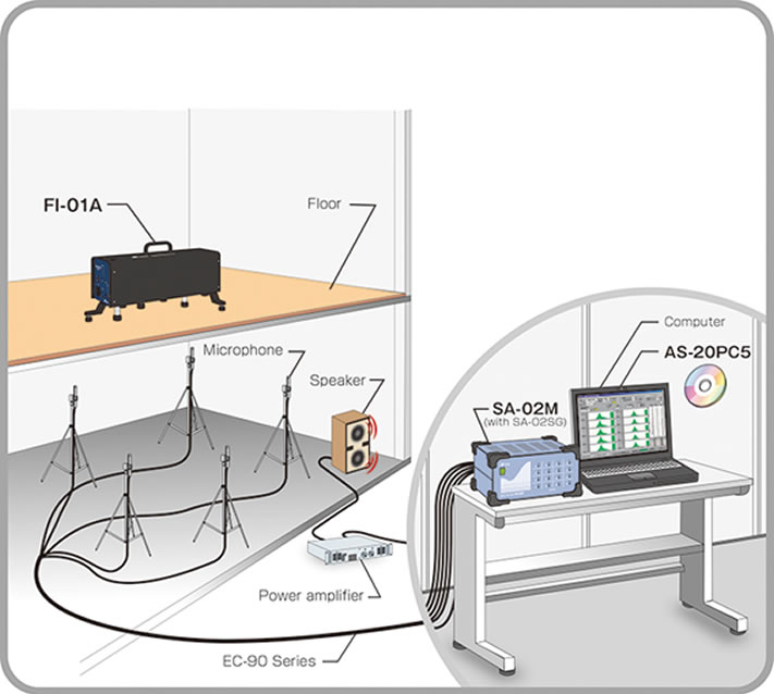 • 輕量級(jí)地板撞擊聲測(cè)量是測(cè)量在地板上完成和落下的物體上行走的鞋的聲音阻擋性能。使用基于多通道分析儀SA-02M的系統(tǒng)進(jìn)行輕量地板沖擊聲測(cè)量。將地板撞擊聲發(fā)生器放在地板上,揚(yáng)聲器和麥克風(fēng)放在地板下,然后將麥克風(fēng)連接到SA-02M。 使用AS-20PC5軟件控制SA-02M,該軟件在計(jì)算機(jī)上控制測(cè)量的空氣噪音和地板沖擊噪音。預(yù)先測(cè)量AS-20PC5上的背景噪音和混響時(shí)間。 之后,操作撞擊聲發(fā)生器并在AS-20PC5上開(kāi)始測(cè)量,系統(tǒng)將自動(dòng)執(zhí)行設(shè)定重復(fù)次數(shù)的測(cè)量。 通過(guò)改變撞擊聲發(fā)生器的位置并進(jìn)行相同的測(cè)量,可以獲得用于評(píng)估的數(shù)據(jù)。除了一系列的自動(dòng)測(cè)量外,還可以重做特定某次的測(cè)量。 最后計(jì)算出隔聲量。