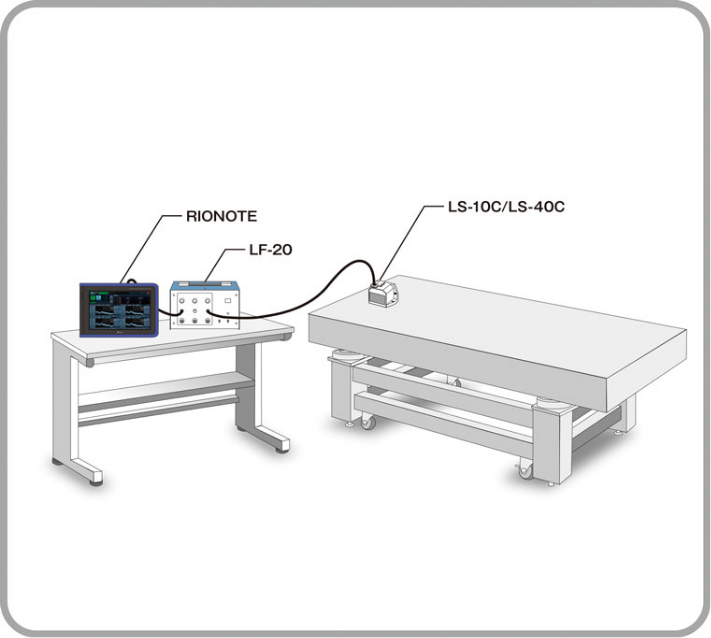 伺服式加速度傳感器 LS-10C/LS-40C 可以測量從DC到100Hz的低頻范圍內(nèi)的振動(dòng)。LF-20可為多達(dá)三個(gè)伺服式加速度傳感器供電,并將信號(hào)輸出為電壓。輸出信號(hào)連接到FFT分析儀進(jìn)行分析和記錄。