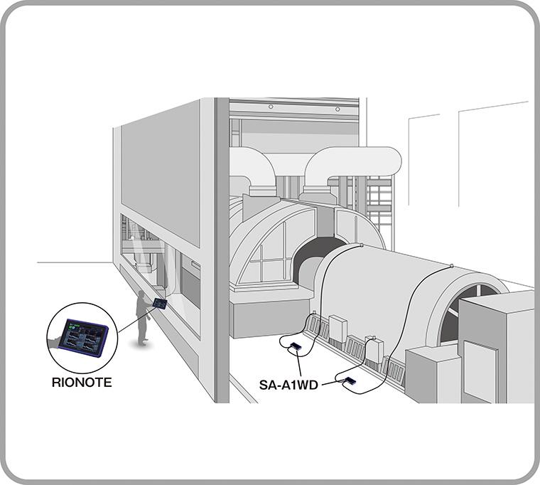 • 使用 SA-A1 便攜式測量分析系統(tǒng)和無線發(fā)射器 SA-A1WD 允許在遠處進行測量操作,例如在危險地點、不穩(wěn)定的位置或溫度及其他環(huán)境條件比較苛刻的位置等。每個 SA-A1WD 單元具有最多可連接4個通道,從而最多可測量16個通道。因此可以輕松實現(xiàn)同時三軸測量(例如兩個水平軸和一個垂直軸)或多位置測量。具有便攜式筆記本的體積和重量(約1.2千克)的 SA-A1 主機易于攜帶,可以放在離測量目標有一定距離但仍然在無線范圍內(nèi)的安全位置。在進行無線傳輸?shù)耐瑫r,測量數(shù)據(jù)也會被保存在無線發(fā)射器的數(shù)采單元中,以防在測量期間無線連接中斷的情況下的數(shù)據(jù)丟失。在測量完成時,數(shù)采單元中的數(shù)據(jù)可被下載到 SA-A1 的SD卡里。